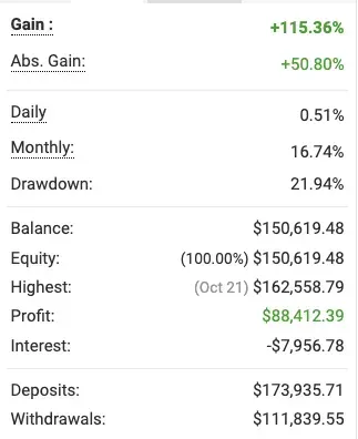 Activity is independently tracked and displayed through Myfxbook.com a third-party monitoring tool. No screenshots. No assumptions. Just real, third-party data.